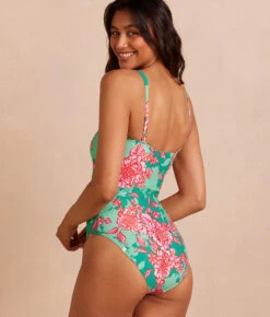 The Seascape Sweetheart One Piece – Burst Floral In Azalea And Seaglass