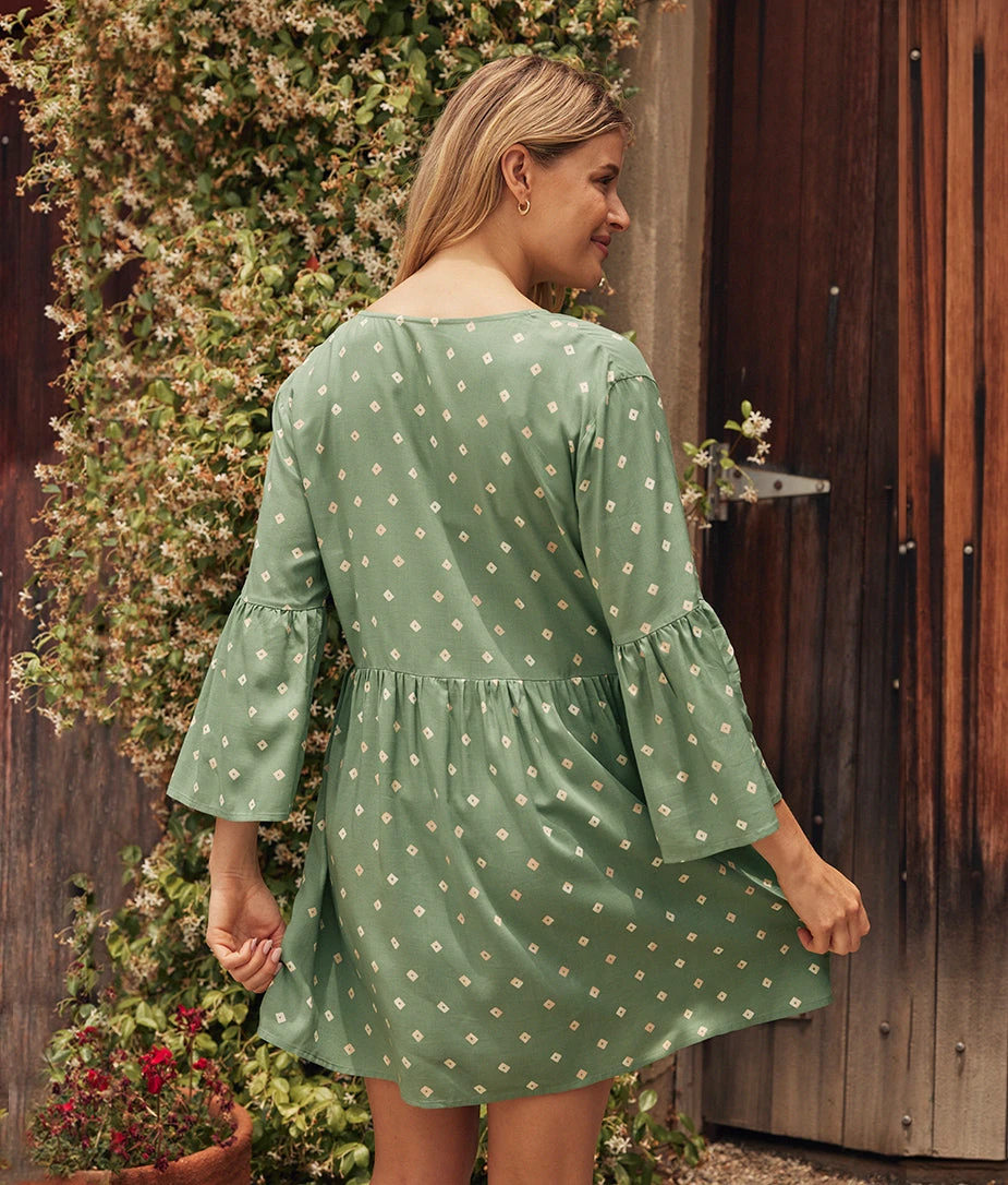 The Easy Breezy Eco Voile Mini Dress Cover-Up – Diamond Dot In Seagreen & White Sand