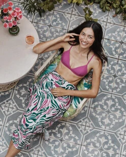 The Perfect Wrap One-Piece – Pink Nectarine Orchard & Aqua Bella Palms