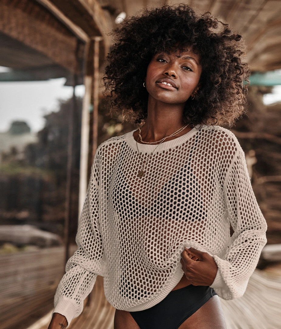 Designed with versatility (and easy packing) in mind, our new Fishnet Crewneck Cover-Up goes with all your favorite swimsuits. Chic and oh-so breezy, it’s made from fishnet-inspired material that shows off a peek of your suit. You’ll love the drapey, relaxed fit and mid-hip length that provides just the right amount of coverage.