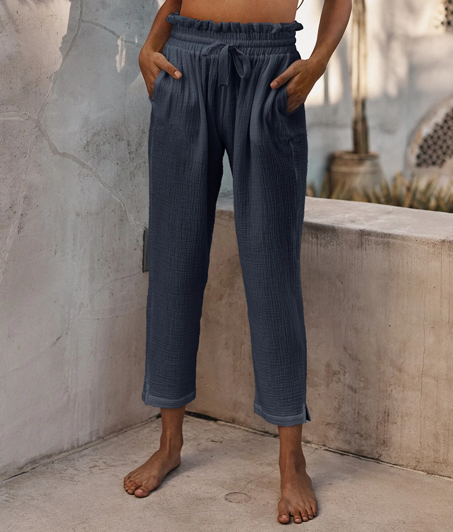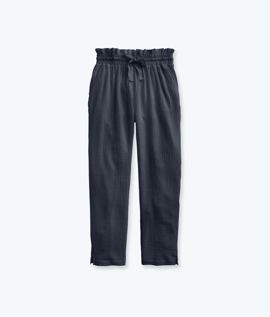 Meet your new favorite “soft pants.” Crafted from our organic cotton gauze, this drawstring style pairs just as easily with your favorite button-down as it does with a bikini top. And we can’t help but brag on the fit: they’re relaxed through the hip but taper to the ankle for a modern look that can take you anywhere.