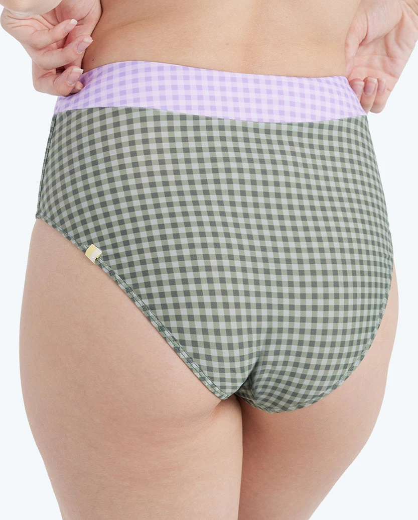 The Lace-Up High Leg High Rise Bikini Bottom – Gingham In Lavender & Ivy
