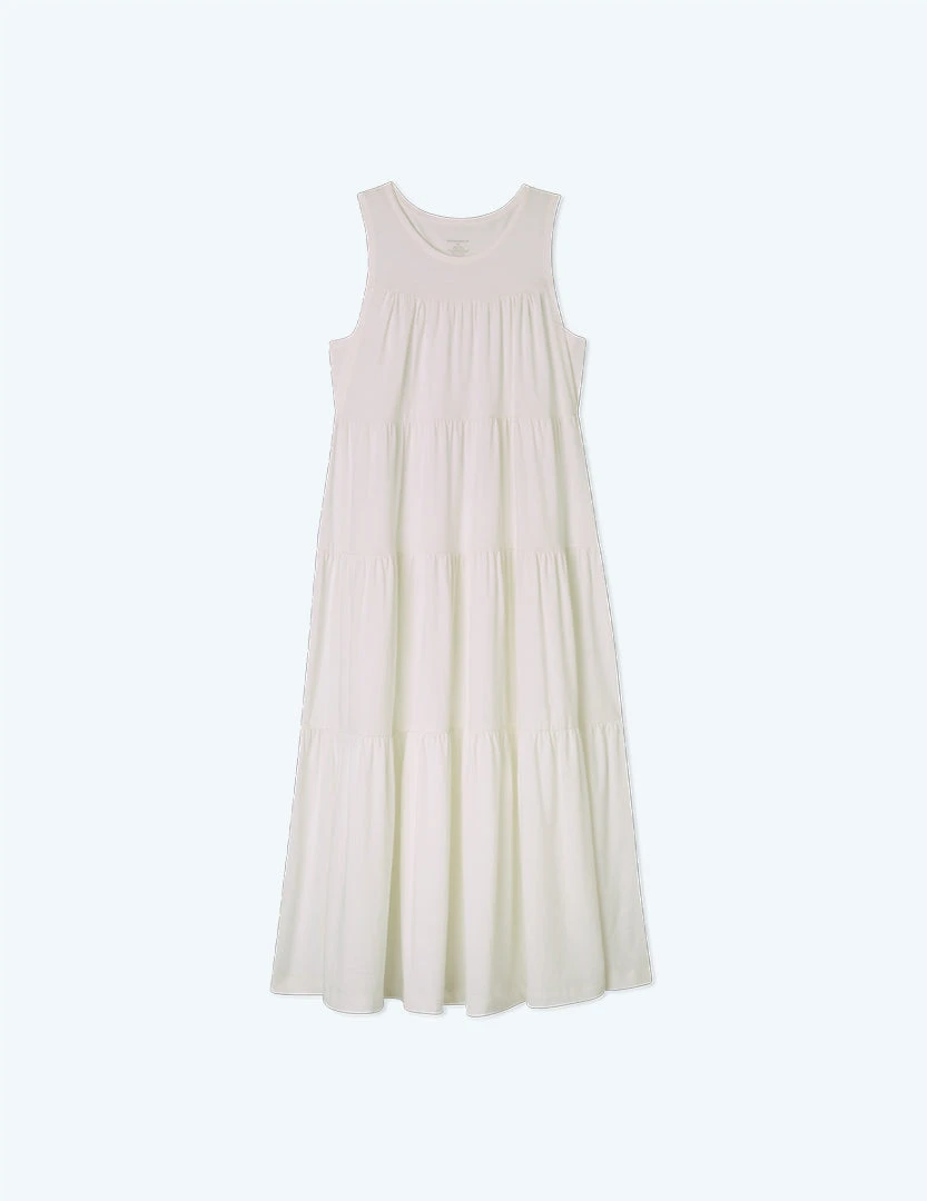 Your favorite tee, in dress form. A one-piece wonder that will have you looking put together in seconds flat, our Luxe Pima Tiered Dress features a breezy fit with dropped armholes & twirl-friendly skirt.