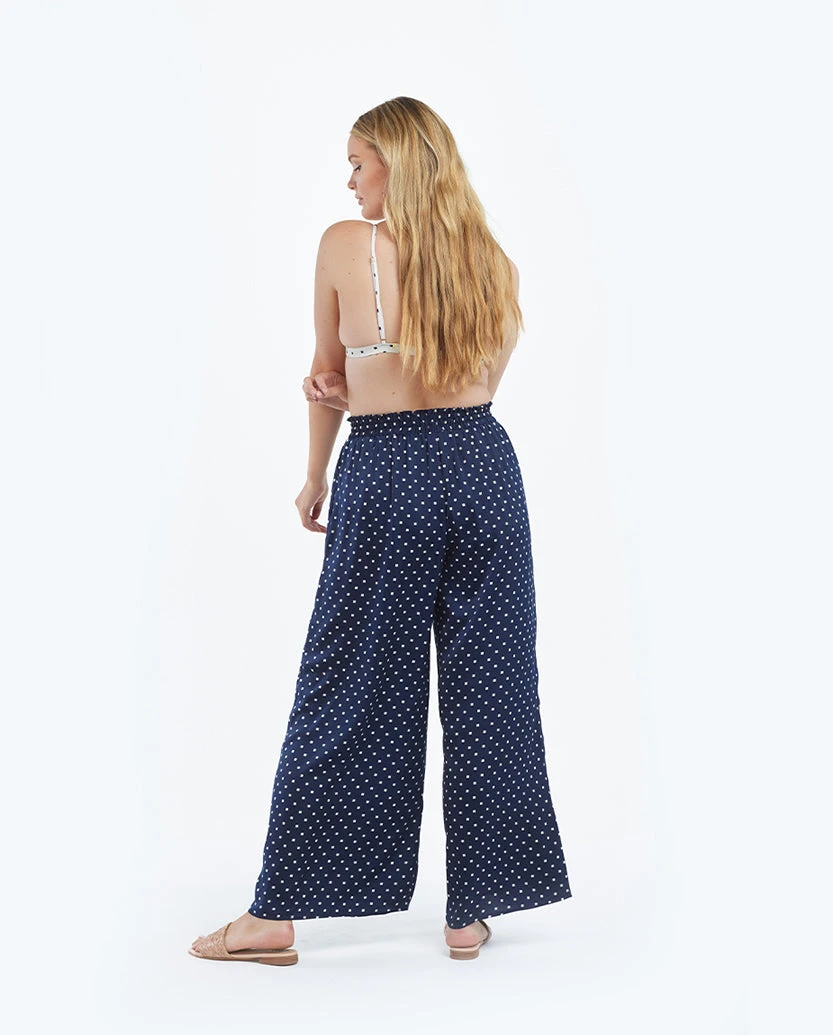 The Palazzo Pant With Ties – Square Dot In Deep Sea & White Sand