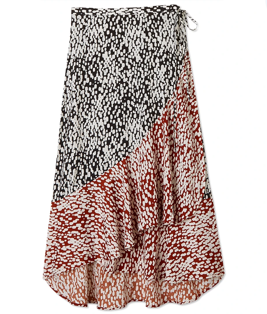 The Silky Luxe Beach To Brunch Wrap Skirt – Watercolor Dot In Sea Urchin & White Sand
