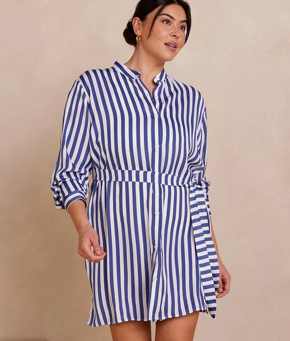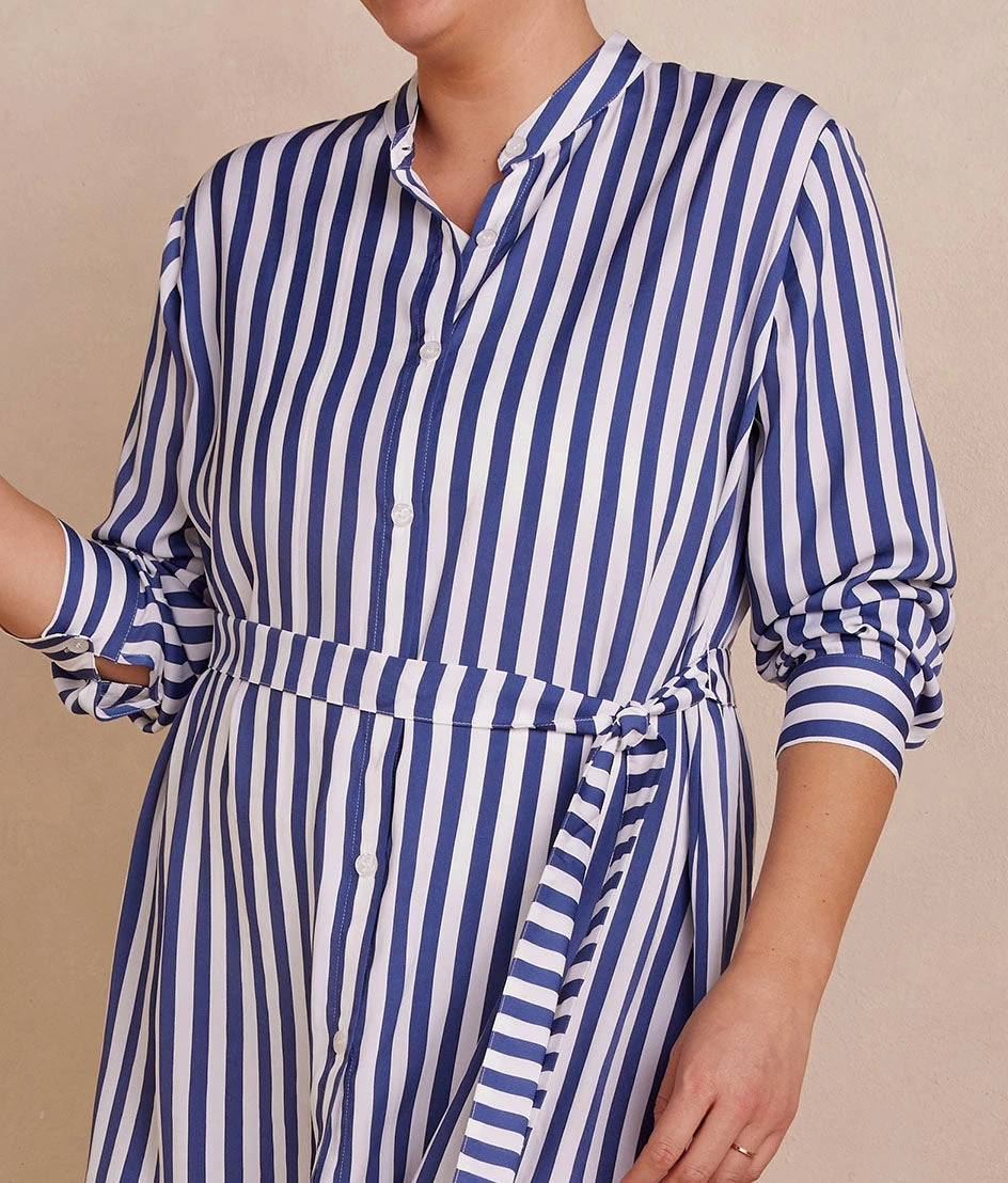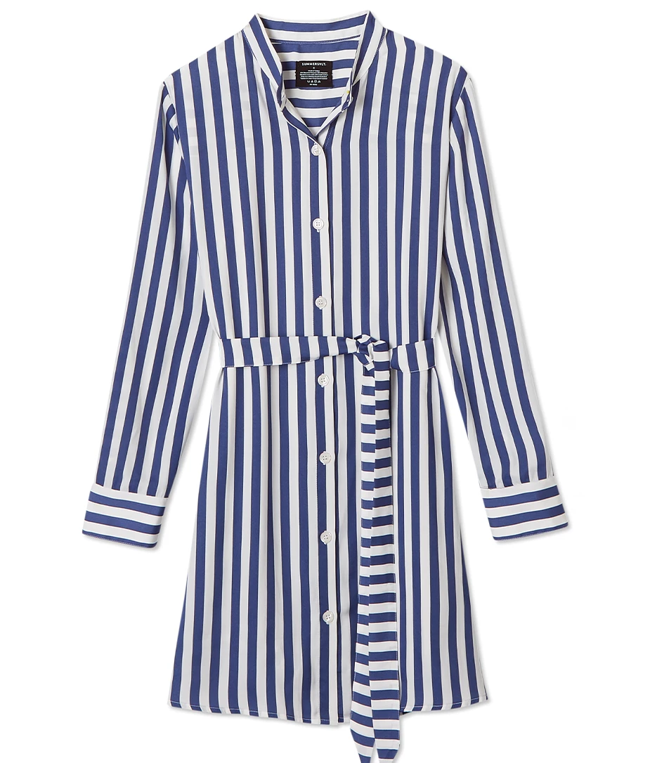 The Silky Luxe Short Effortless Shirtdress Cover-Up – Nautical Stripe In Blue Mountain