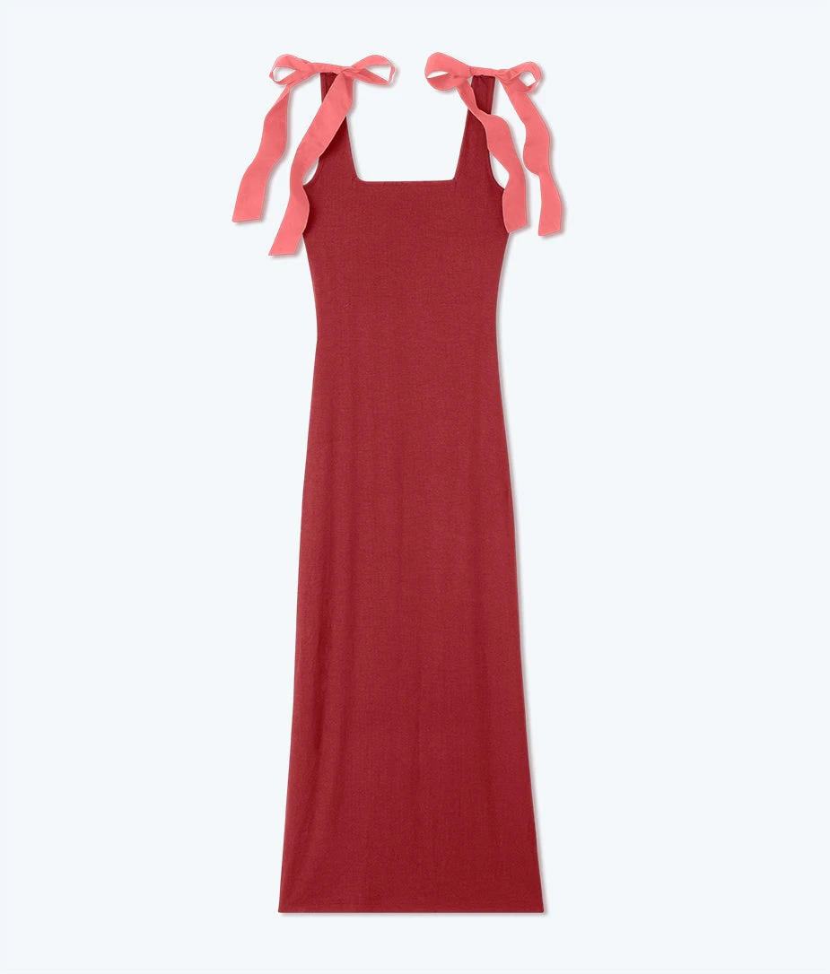 The Softest Ribbed Tie-Shoulder Maxi Dress – Lychee & Pomegranate