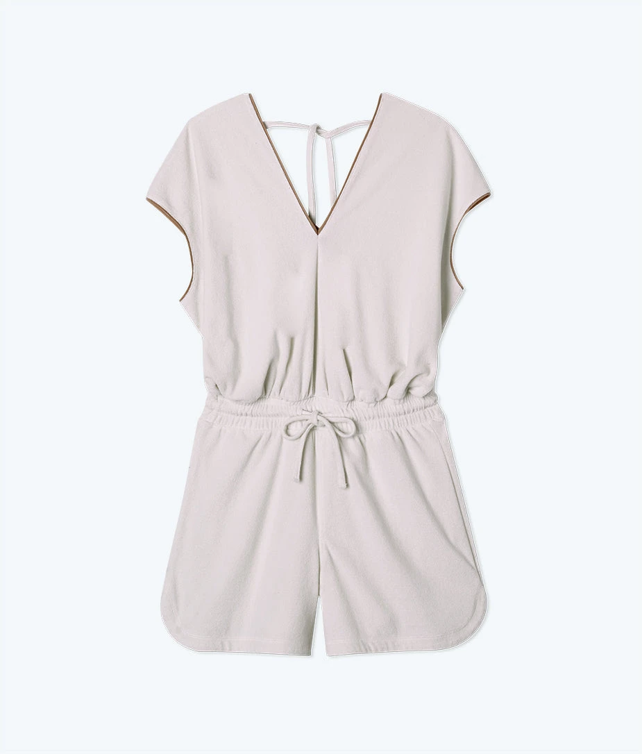 The Towel Terry V-Neck Romper – White Sand