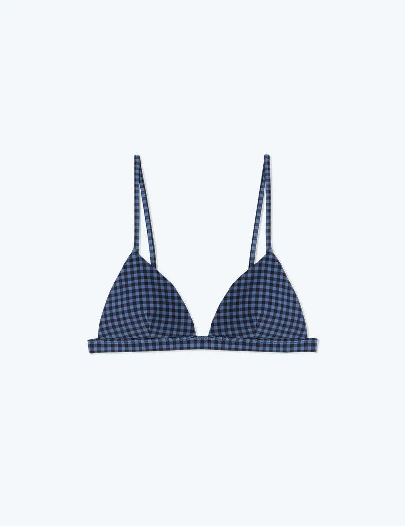 The Triangle Bikini Top – Gingham In Blue Mountain & Toffee